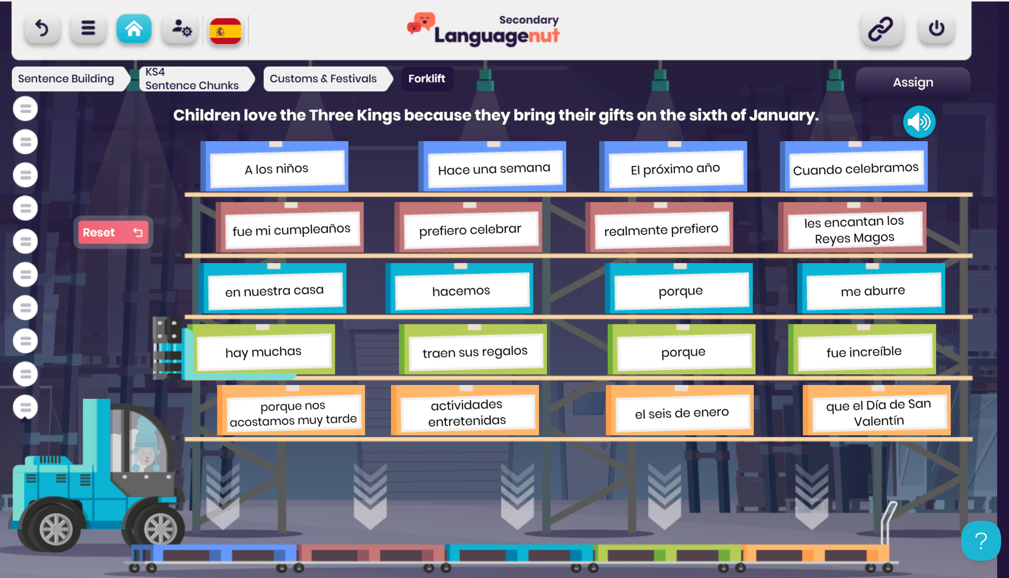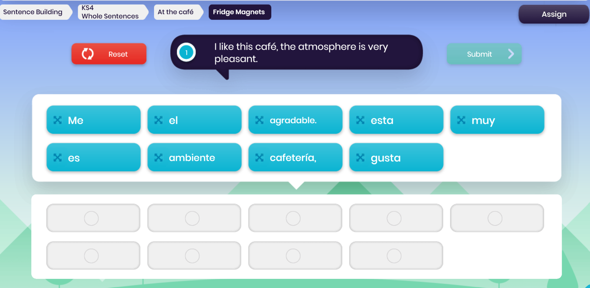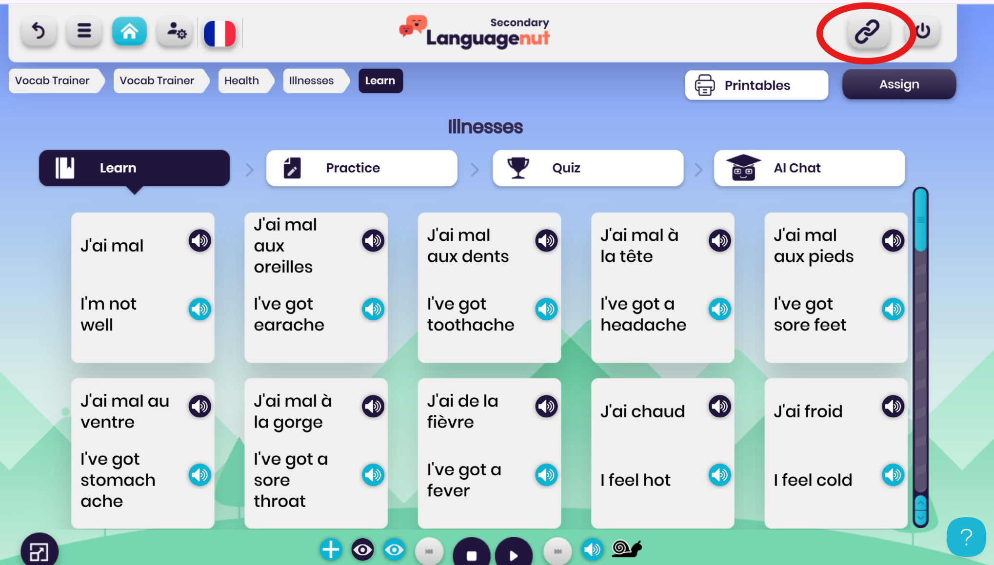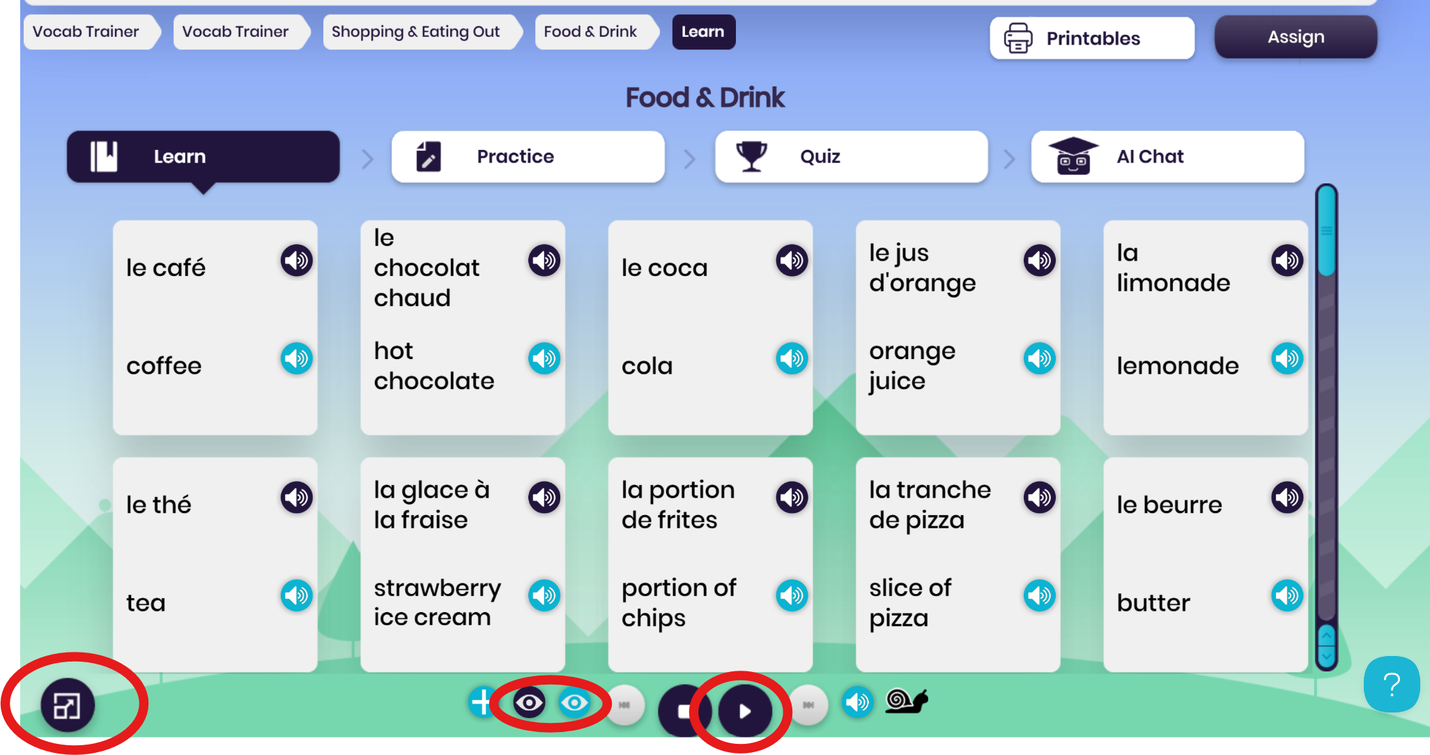 This works brilliantly for choral repetition, pronunciation drills, and quick recall activities. Use the Quick Assign button to assign the vocab set to your students so they can access it outside of class – no need to print vocab lists!