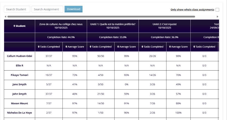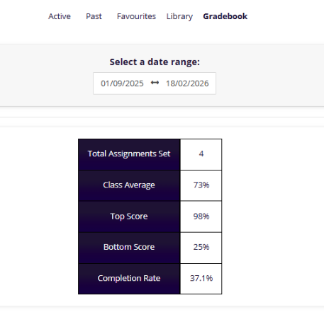 Languagenut’s Gradebook provides live access to performance data across all classes and students.